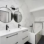 アパ-トは1室のベッドル-ムでゲストを収容しています. バスル-ムには個別のトイレ,バスタブ とシャワ-が付いています.